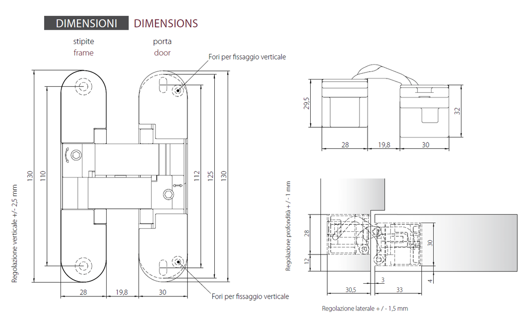 • Вертикальная регулировка:  -2,5 мм +2,5 мм